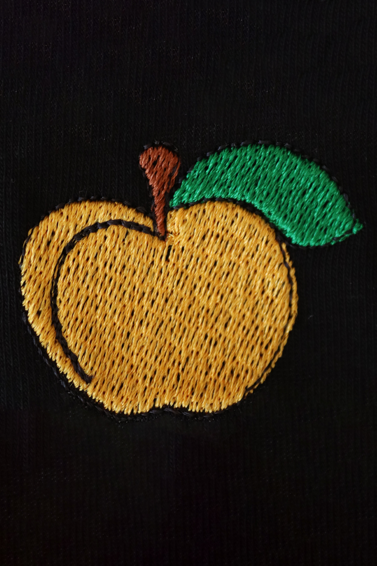 Sarı Elma Desenli Siyah Nakış Tişört