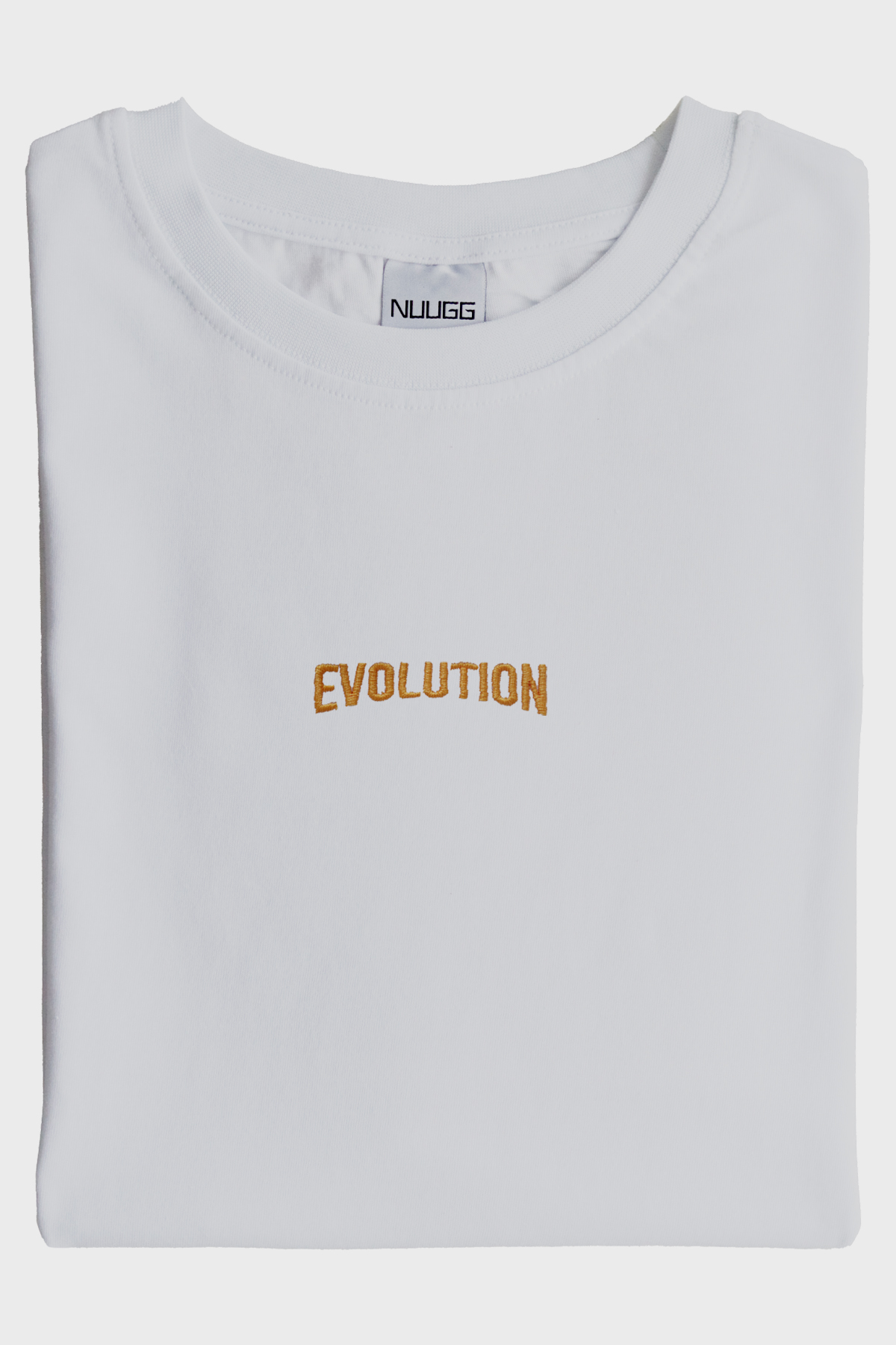Bilimin ve değişimin sembolü olan Evolution yazısı, şimdi zarif sarı nakış detaylarıyla t-shirt tasarımında! Evrim teorisine ve bilimsel düşünceye ilgi duyanlar için özel olarak tasarlanan bu model, hem şık hem de anlamlı bir stil sunuyor.