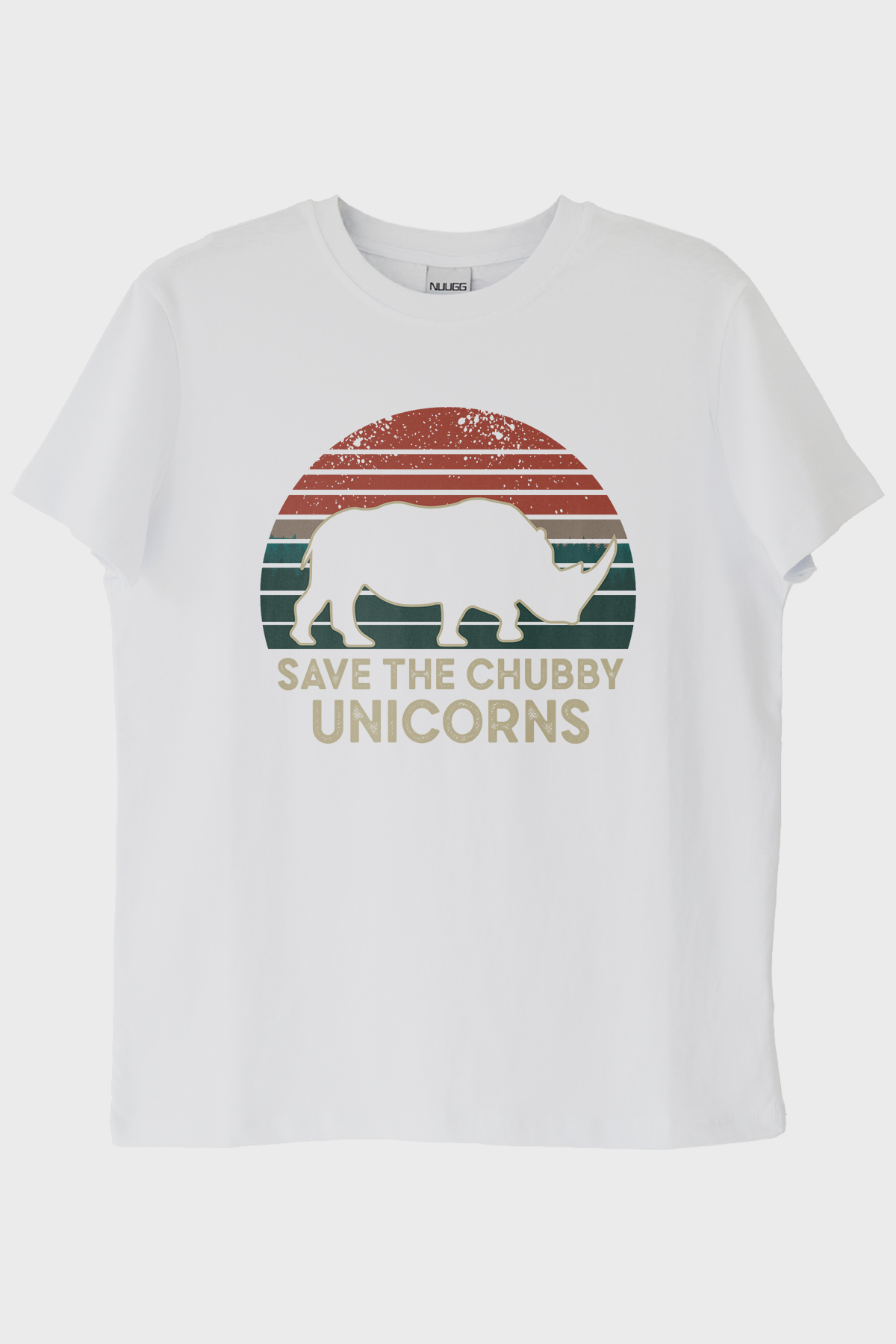 Save the Chubby Unicorns Retro Gergedan Baskılı Tişört