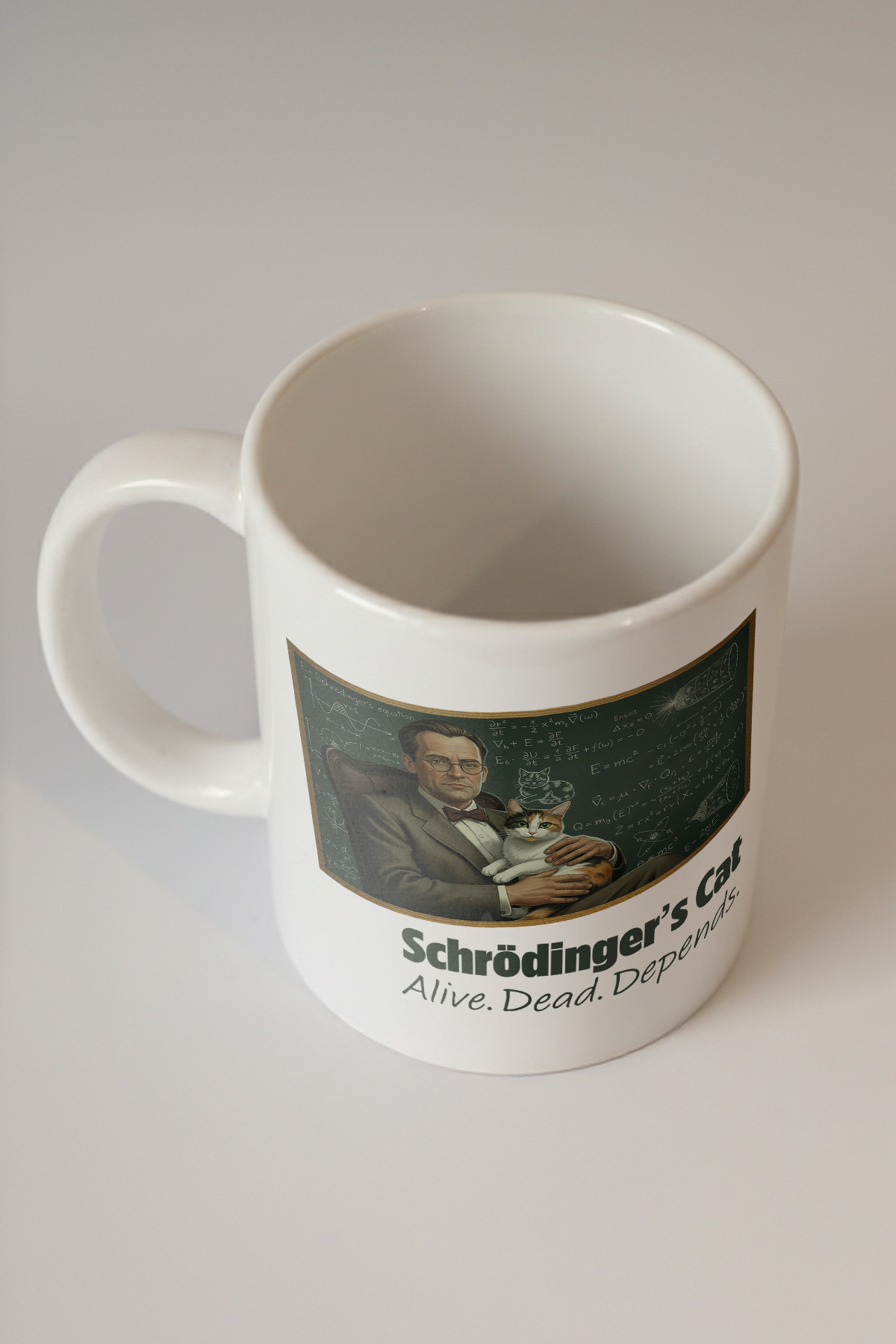 Bilim dünyasına mizahi bir dokunuşla yaklaşmak isteyenler için mükemmel bir seçim olan Schrödinger'in Kedisi kupası, beyaz zemin üzerinde dikkat çekici bir tasarıma sahiptir. Bu özel tasarımda ünlü fizikçi Schrödinger ve kedisi, kuantum fiziğinin en ünlü düşünce deneylerinden biri olan "Schrödinger'in Kedisi" kavramını esprili bir şekilde ele alıyor. Kupa, fizik ve kuantum dünyasına ilgi duyanlar için hem eğlenceli hem de öğretici bir deneyim sunuyor. Irony sevenler için harika bir hediye olabilecek bu ürün, sabah kahvenizi yudumlarken arkadaşlarınızı etkilemenin eğlenceli bir yolunu sağlar.