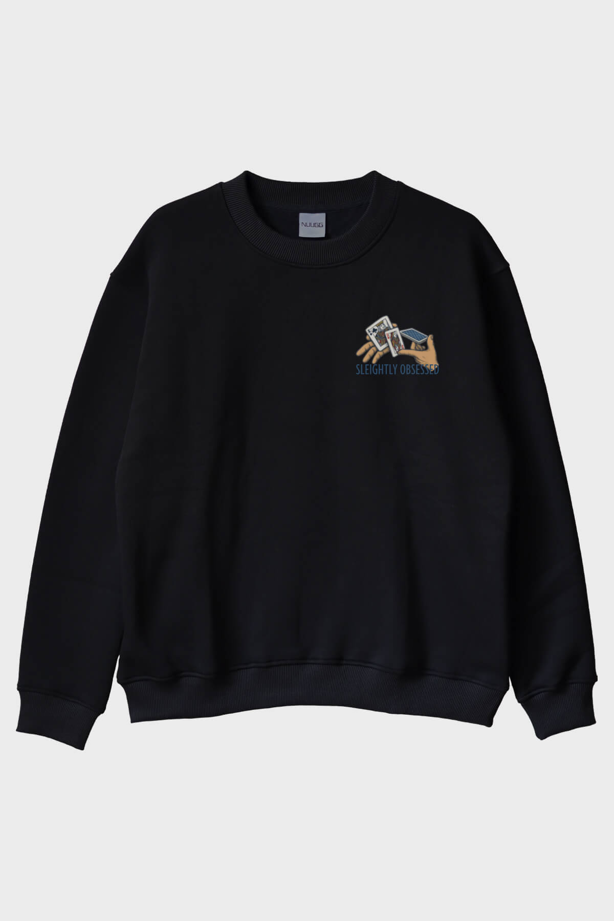 Sleightky Obsessed bisiklet yaka sweatshirtü, kart oyunları ve sihirbazlık hayranları için mükemmel bir seçimdir. Üzerinde bulunan, kartlarla hokkabazlık yapan bir elin çizimi ve 'Sleightly Obsessed' yazısı, bu bisiklet yaka sweatshirtü oldukça dikkat çekici bir hale getiriyor. Eğlenceli bir tasarım anlayışı ile hem günlük hayatta rahat bir stil yakalamak isteyenlere hem de kart oyunları ve sihirbazlık dünyasına meraklı olanlara hitap ediyor. Tasarımın esprili ve merak uyandıran yapısı, özellikle mizah anlayışına önem veren ve bu tarzı giyim stiline yansıtmak isteyenler için birebir. Eğer tarzınızda espri ve ironiye yer vermek isterseniz, bu tasarım Irony kategorisindeki diğer esprili tasarımlarla harika uyum sağlar.