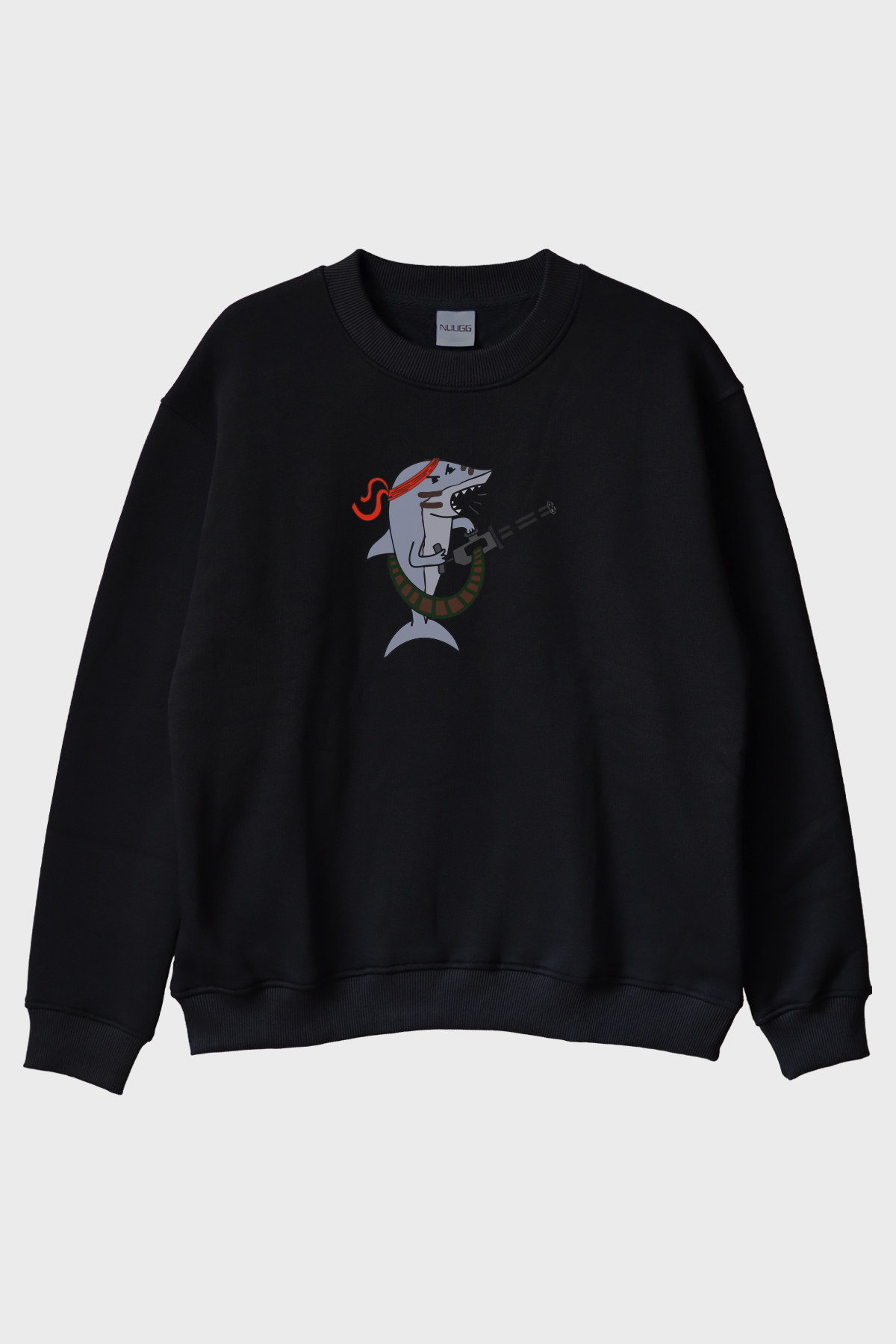 Su Altı Komandosu Siyah Bisiklet Yaka Sweatshirt