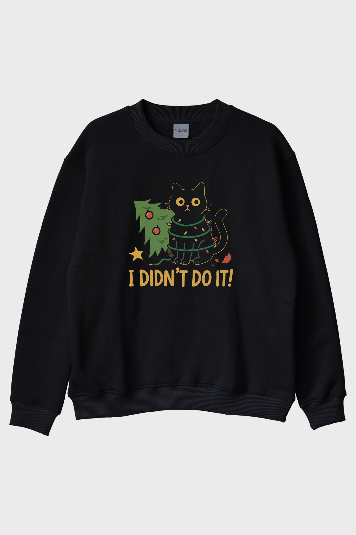Suçlu Kedi Bisiklet Yaka Sweatshirt, üzerinde Noel ağacının hemen yanında masum bir tavırla duran bir kedi ve “I Didn't Do It!” ifadesi bulunan sevimli tasarımıyla dikkat çekiyor. Bu sempatik tasarım, hem hayvan sevgisini hem de mizah anlayışını bir araya getiriyor. Mizahi bir dille işlenmiş olan bu bisiklet yaka sweatshirt, kedi sahiplerinin ve hayvanseverlerin favorisi olmaya aday. Bisiklet Yaka Sweatshirt, yılbaşı dönemi için mükemmel bir seçim olabilirken, aynı zamanda her mevsim günlük stilinizi tamamlayacak eşsiz bir parça olma özelliğini taşıyor.