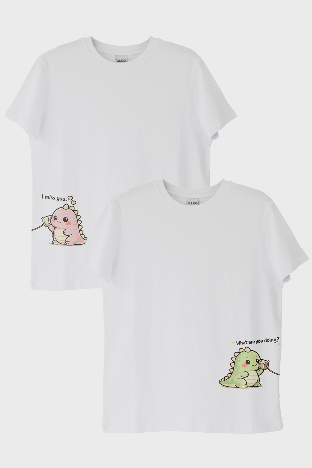 Sevginizi ifade etmenin dört dörtlük bir yolunu mu arıyorsunuz? Tatlı Dinozor Çift Tişörtleri, sevimli ve anlam dolu tasarımıyla tam da ihtiyacınız olan şey olabilir. Tasarımın merkezi iki sevimli dinozor karakteri, uzun mesafelere rağmen ip telefonları aracılığıyla iletişim kuruyor. Bu tatlı karakterlerden biri, "I miss you" diğeri ise "What are you doing?" mesajını iletiyor. Tasarımın bu yönü, sevgiyi ve özlemi tatlı bir komediyle birleştiriyor. Çiftler için ideal olan bu ürün, mizah ve romantizmi bir arada sunarak hem siz hem de partneriniz için eşsiz bir deneyim vadediyor. Love kategorisinin bir parçası olan bu ürün, aşkın evrenselliğini ve samimiyetini simgeliyor.