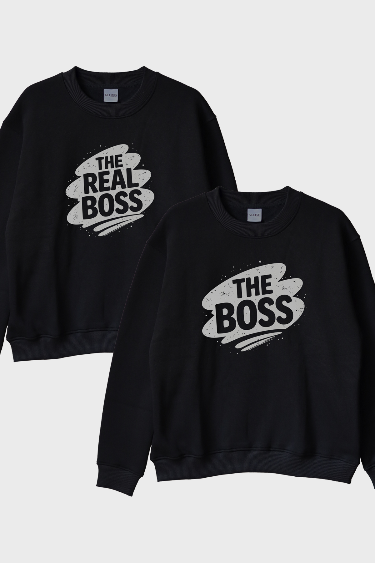 The Boss Çift Bisiklet Yaka Sweatshirt, tarzlarına espri katmak isteyen çiftler ve partnerler için mükemmel bir seçimdir. Bu tasarımda 'THE BOSS' ve 'THE REAL BOSS' yazıları dikkat çekiyor. Her iki tasarım da güçlü bir karakter sergileyerek uyumlu bir mesaj veriyor. İddialı bir stil sunan bu tasarım, kişilerin kendini ifade etme biçimlerinin benzersiz bir yansımasıdır. Günlük yaşamda eğlenceli bir aksesuar olarak kullanılabilecek yegane seçeneklerden biridir ve moda dünyasında ironiyi sevenler için idealdir.