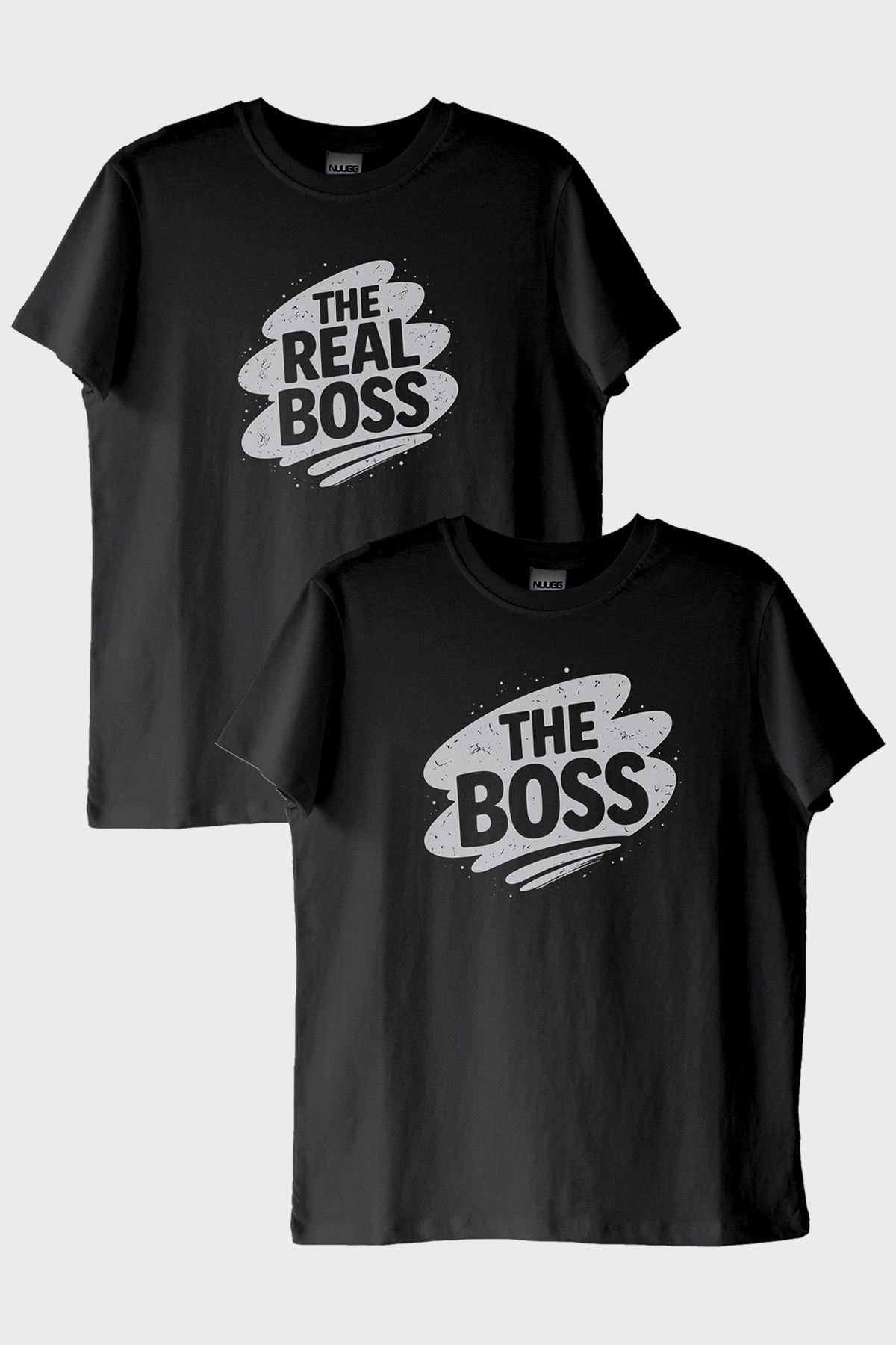 The Boss Çift Tişört, tarzlarına espri katmak isteyen çiftler ve partnerler için mükemmel bir seçimdir. Bu tasarımda 'THE BOSS' ve 'THE REAL BOSS' yazıları dikkat çekiyor. Her iki tasarım da güçlü bir karakter sergileyerek uyumlu bir mesaj veriyor. İddialı bir stil sunan bu tasarım, kişilerin kendini ifade etme biçimlerinin benzersiz bir yansımasıdır. Günlük yaşamda eğlenceli bir aksesuar olarak kullanılabilecek yegane seçeneklerden biridir ve moda dünyasında ironiyi sevenler için idealdir.
