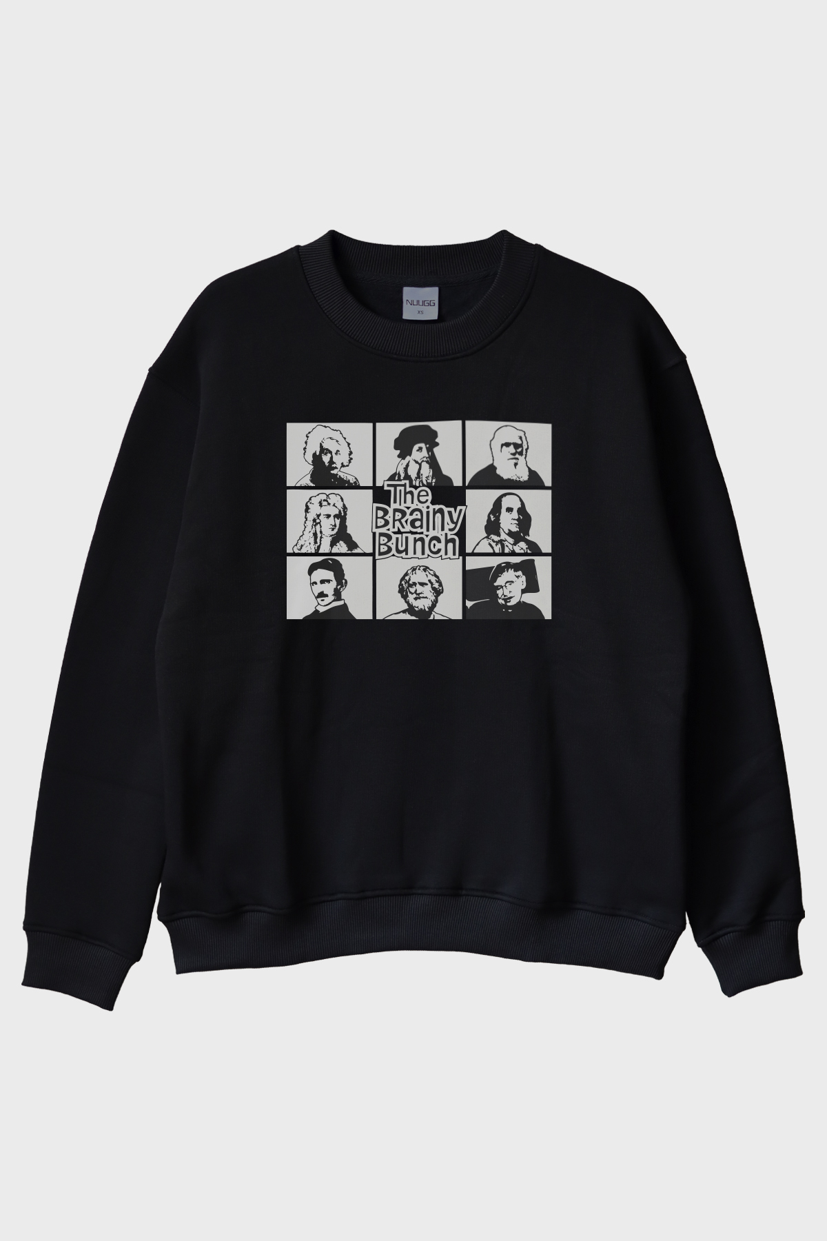 Bu beyaz bisiklet yaka sweatshirt, zekayı ve geçmişin ünlü bilim insanlarını kutlayan özel bir tasarım sunuyor. "The Brainy Bunch" başlığı altında sunulan bu tasarım, siyah beyaz portrelerden oluşuyor ve göğüs hizasında dikkat çekici bir kare çerçevede yer alıyor. Çizimlerin retro havasını tamamlayan kalın yazı tipiyle, zeka ve bilim temalı bir tasarım sunuluyor. %66 pamuk dokusu ile cilt dostu ve uzun ömürlü bir kullanım vaat ediyor. Yüksek kaliteli baskı teknolojisiyle üretilmiş olup, yerli üretim bir üründür. Bu tasarım bisiklet yaka sweatshirt, hem Bisiklet Yaka Sweatshirt hem de bisiklet yaka sweatshirt kategorilerinde bulunabilir.