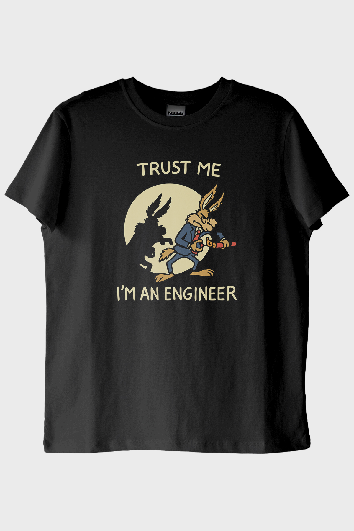 Trust Me I'm an Engineer Tişört, mühendislik dünyasına olan hayranlığınızı ve mizahi yaklaşımınızı bir araya getiren eşsiz bir tasarıma sahiptir. Tişörtün ön kısmında, elinde bir alet tutan takım elbiseli tavşan karakteri dikkat çeker. Bu eğlenceli karakterin hemen yanında "Trust Me, I'm an Engineer" yazısı yer alır. Tasarımdaki mizahi detaylar, mühendislik alanında çalışan veya bu alana ilgi duyan yetişkinler için idealdir. Bu baskılı tişört, çevrenizde espri anlayışınızı ve mühendislik tutkunuzu sergilemenin de harika bir yoludur. Aynı zamanda, Punchline koleksiyonundaki diğer tişörtlerle birlikte kombinlendiğinde de harika bir stil oluşturmanızı sağlar.