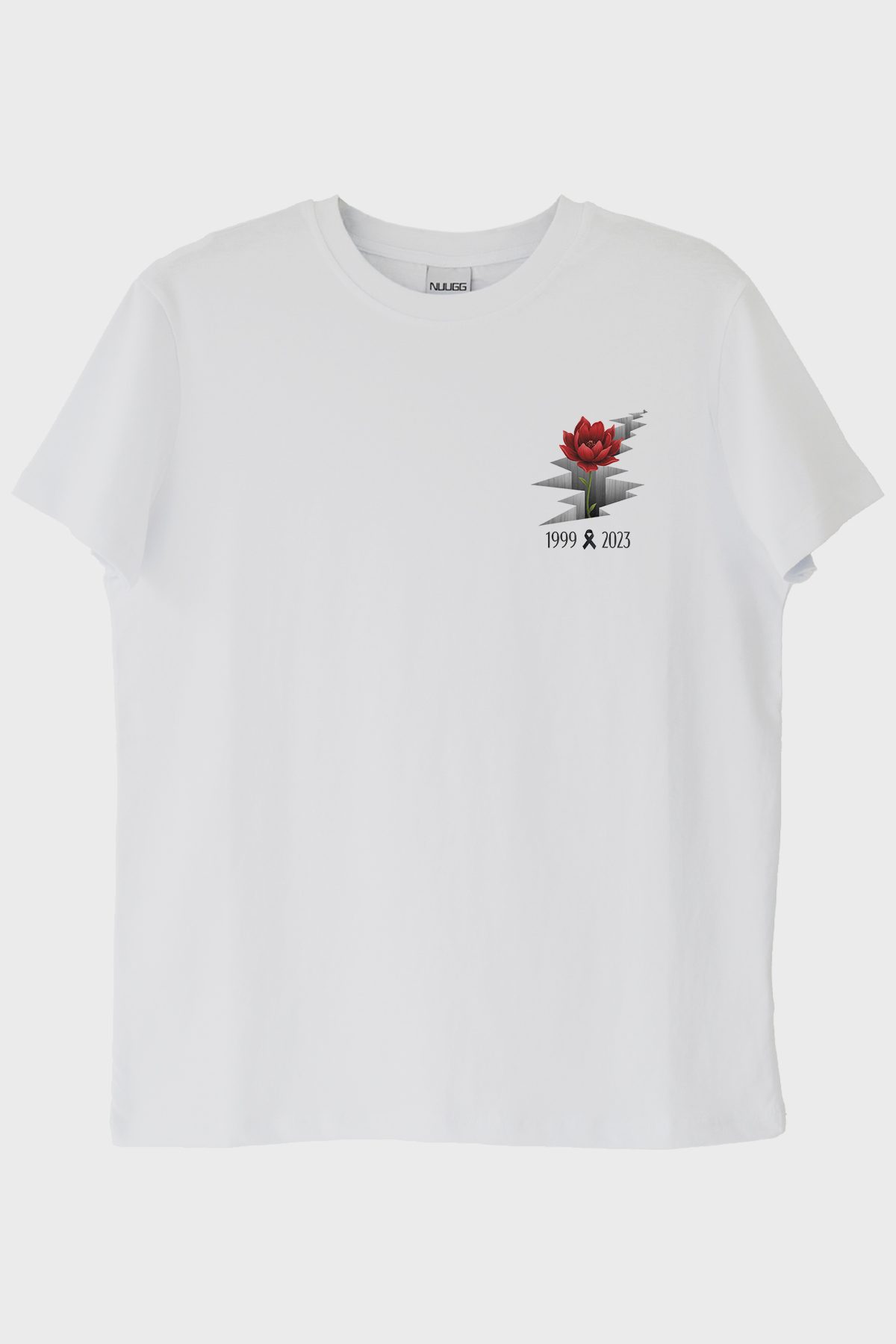 Umut Çiçeği Baskılı Tişört, her bakışta dikkat çeken ve derin anlamlar taşıyan benzersiz bir tasarıma sahiptir. Sağ göğsünde dikey olarak stilize edilmiş kırmızı bir çiçek ve metalik bir fon tasviri yer alırken, çiçeğin hemen altında '1999 - 2023' yazısı bulunur. Bu tasvir sadece estetik bir güzellik sunmakla kalmaz, aynı zamanda umut ve dayanıklılığı simgeler. Zarif ve anlamlı bir ifade arayan herkes için ideal olan bu tasarım, hem geçmişe hem de geleceğe dair umut dolu bir mesaj aktarır. Çiçek motifinin etkileyici zarafeti ve tarihle birleşen hikâyesi, farklı stillerden insanlara hitap eder ve kişisel ifade biçimlerini destekler.