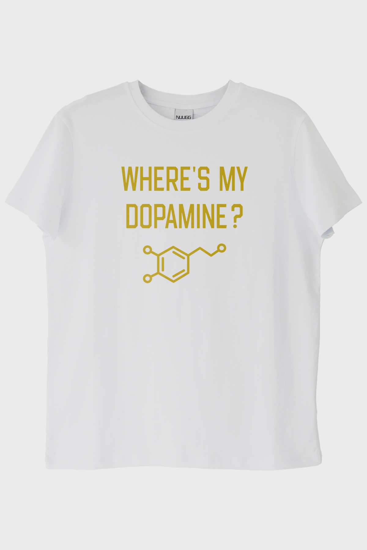 Where's My Dopamine Baskılı Bilim Temalı Beyaz Tişört