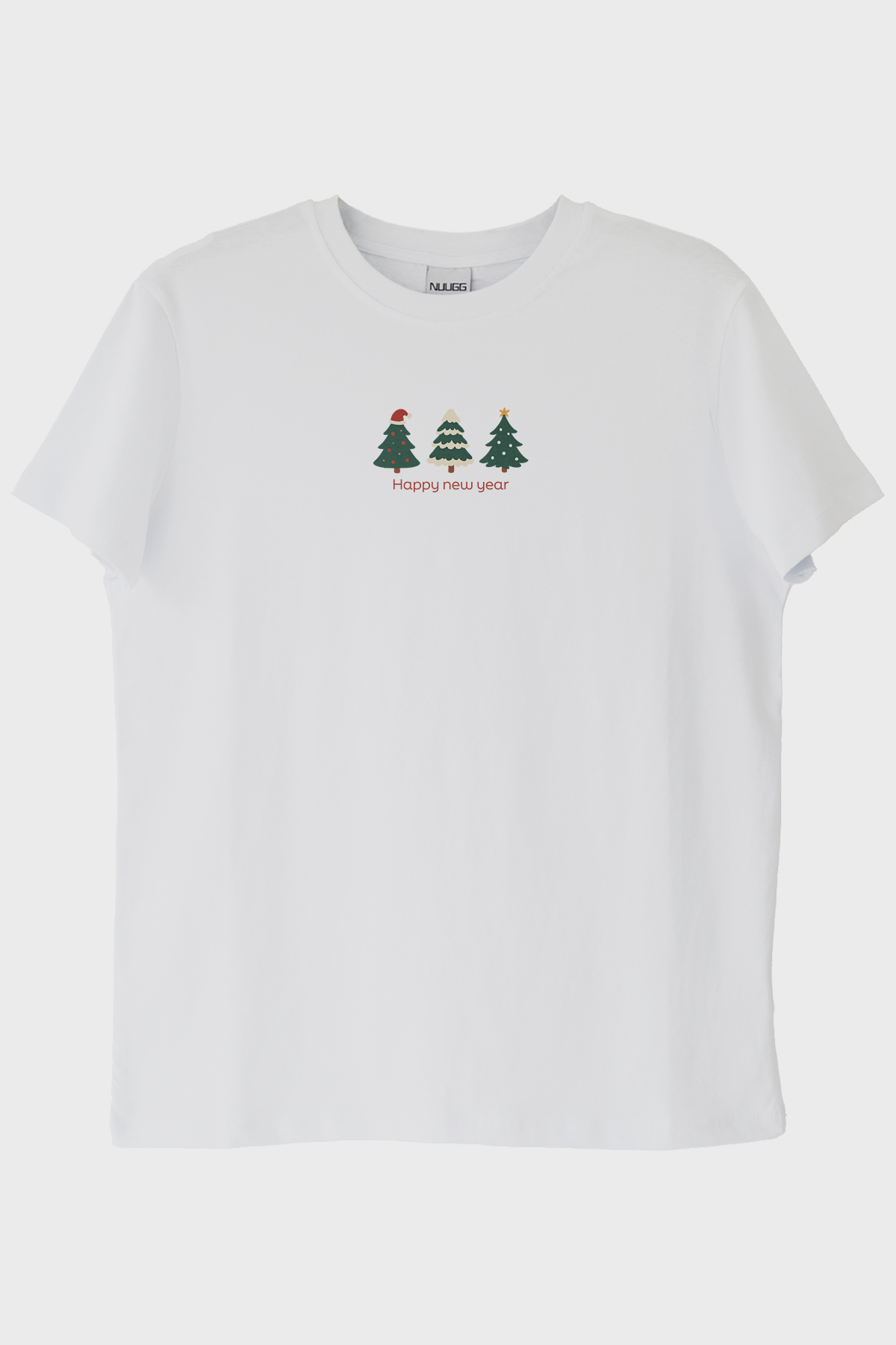 Yılbaşı Ağacı Grafik Beyaz Tişört
