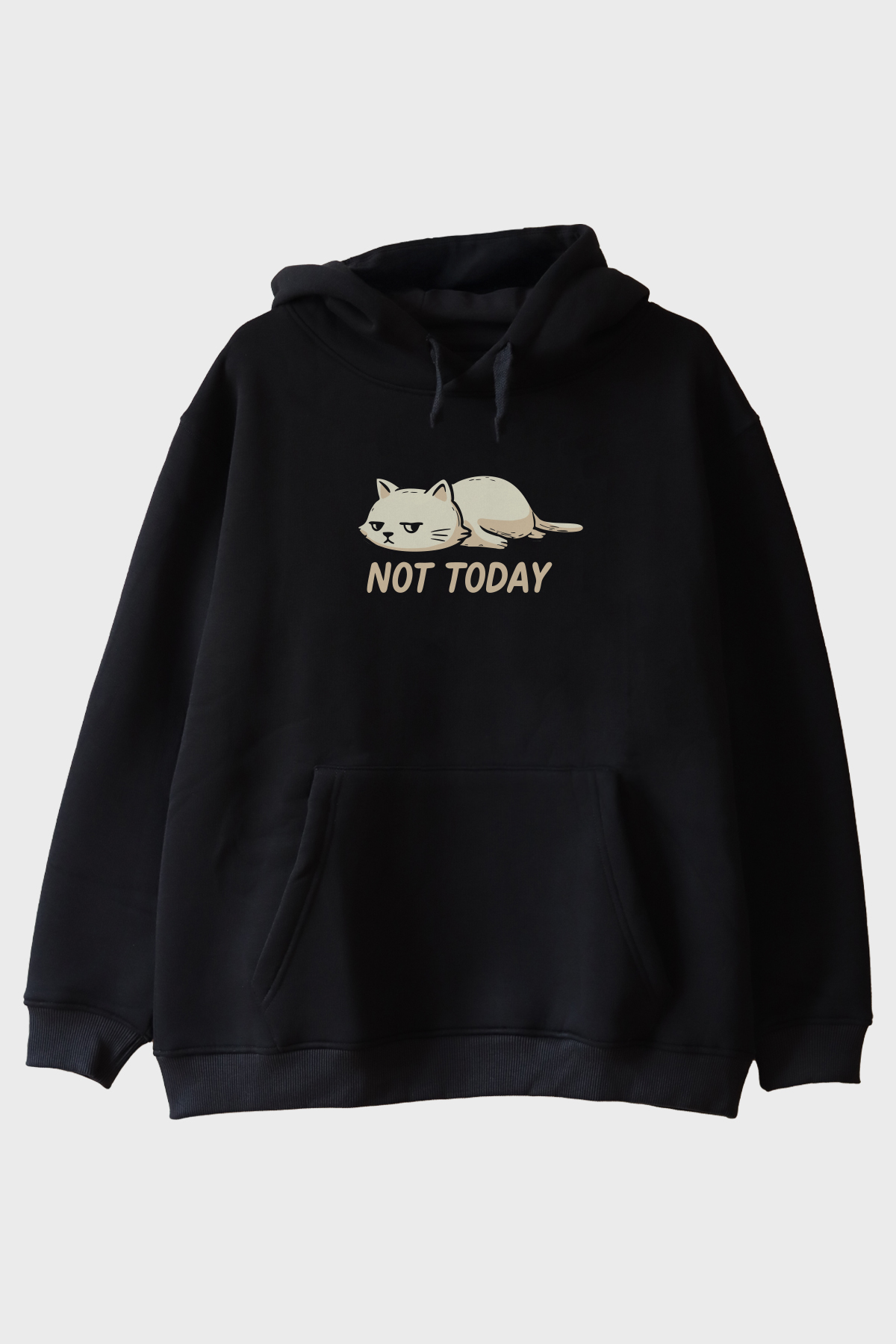 Yorgun Kedi Mizahi Not Today Hoodie, mizahi ve minimalist bir tasarıma sahip olan eşsiz bir giyim parçasıdır. Hoodieün ön yüzünde, yorgun ve umursamaz bir ifadeyle resmedilmiş beyaz bir kedi yer almakta, onun hemen altında ise cesur bir şekilde "NOT TODAY" ifadesi bulunmaktadır. Gençleri ve hayvan severleri hedef alan bu hoodie, günümüzde popüler olan rahat ve samimi giyim tarzını mükemmel bir şekilde yansıtır. Hoodie, basit ama etkili tasarımıyla, günün yoğun temposu içinde biraz mola vermek isteyenlerin ruh halini yansıtan bir mizah anlayışına sahiptir. Bu hoodie, günlük yaşamınızda hem rahat hem de dikkat çekici olmak için mükemmel bir seçimdir.