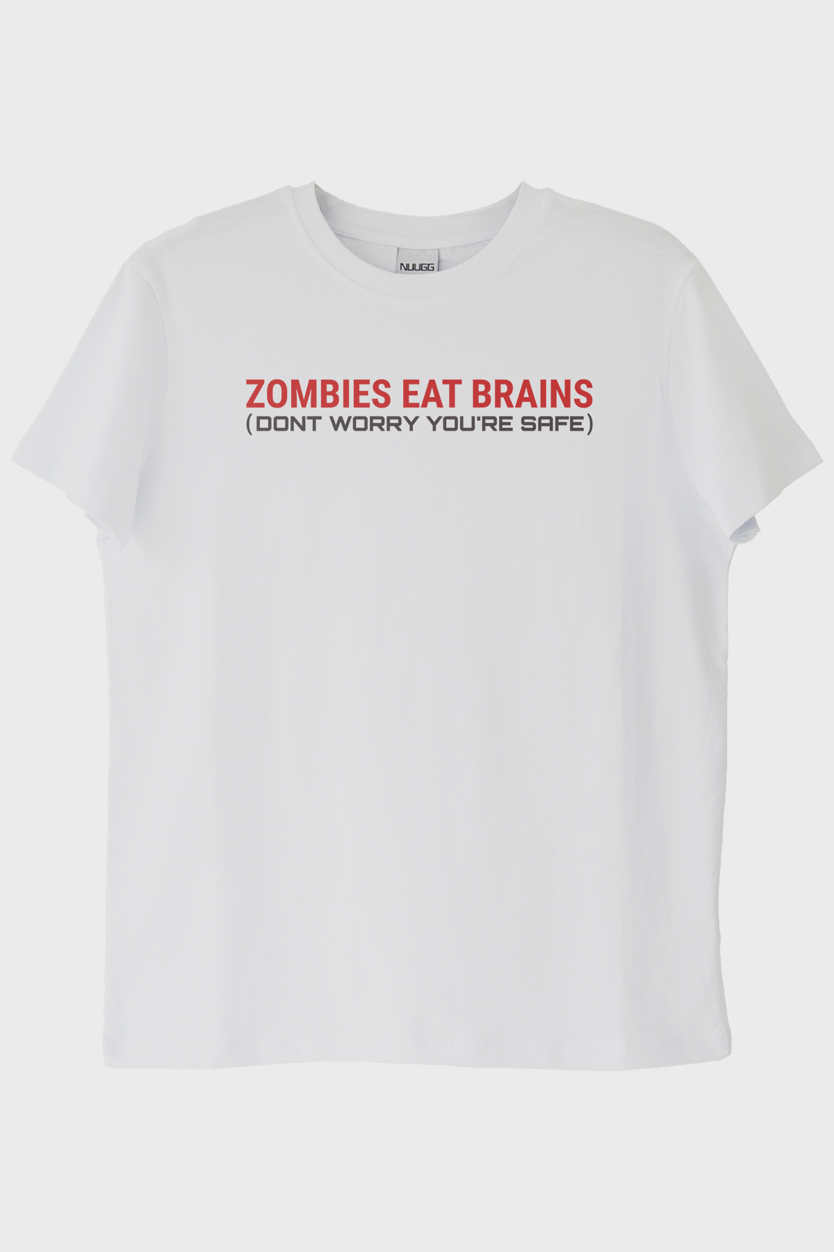 Zombies Eat Brains Baskılı Beyaz Tişört